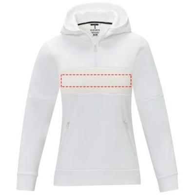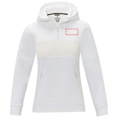 Sayan damtröja med halv dragkedja och huva i anorakmodell - en unik kombination av prestanda och stil. Anorakdesignen kombinerar mode och funktion på ett smidigt sätt och har en kvarts dragkedja för mångsidiga lager på lager. Tillverkad av en 350 g/m²-blandning av polyester och Sorona®-stickning. Sorona®-fibern förbättrar jackans miljövänlighet genom att integrera ett hållbart element utan att kompromissa med prestandan. Kontrasttyget på frontpanelen, tillverkat av 280T ripstop nylon, bidrar till designen med sin hållbarhet och struktur och är den perfekta platsen för att visa upp ditt varumärke. Oavsett om du ger dig ut på ett utomhusäventyr eller bara tar dig igenom vardagen kombinerar Sayan huvtröja mode med funktion på ett enkelt sätt. Tröjan är designad med en figurnära passform för en feminin look.