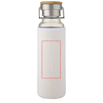 Borosilikatglasflaska med enkelvägg och skyddsfodral av neopren. Har ett skruvbart lock med bambutopp, samt ett handtag för att enkelt bära med sig. Flaskan är tillverkad av 100 % hållbart borosilikatglas som bevarar färskheten i drycken och innehåller inte några skadliga kemikalier. BPA-fri, testad och godkänd enligt tysk lagstiftning om livsmedelssäkerhet (LFGB). Testad och godkänd för ftalatinnehåll enligt REACH-förordningarna. Den bambu som används är från hållbara, miljömässigt och socialt ansvarsfulla källor. Volymkapacitet 660 ml. Genom att ta bort neoprenfodralet och locket tål flaskan maskindisk. Levereras i en återvunnen presentförpackning av kartong.