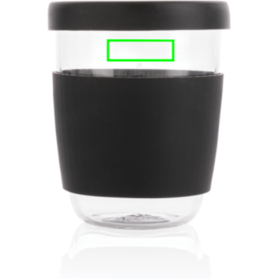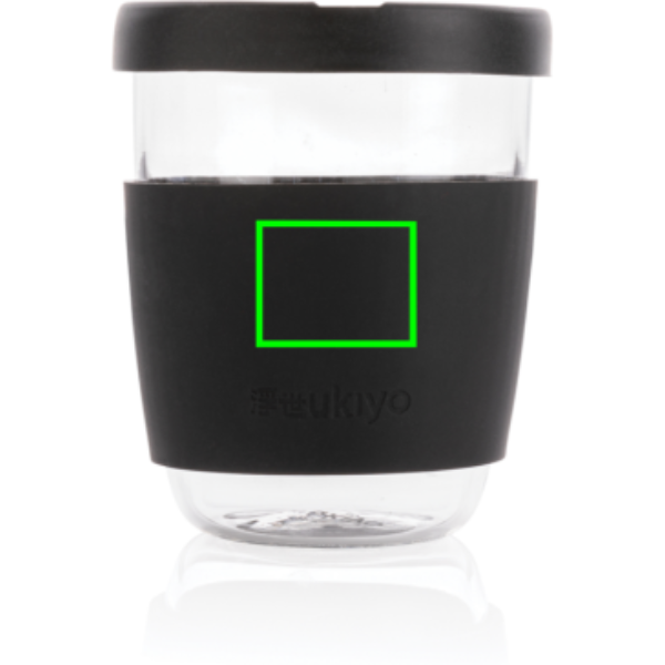 Logotrade reklamprodukter bild: Ukiyo borosilikatglas med silikonlock och sleeve